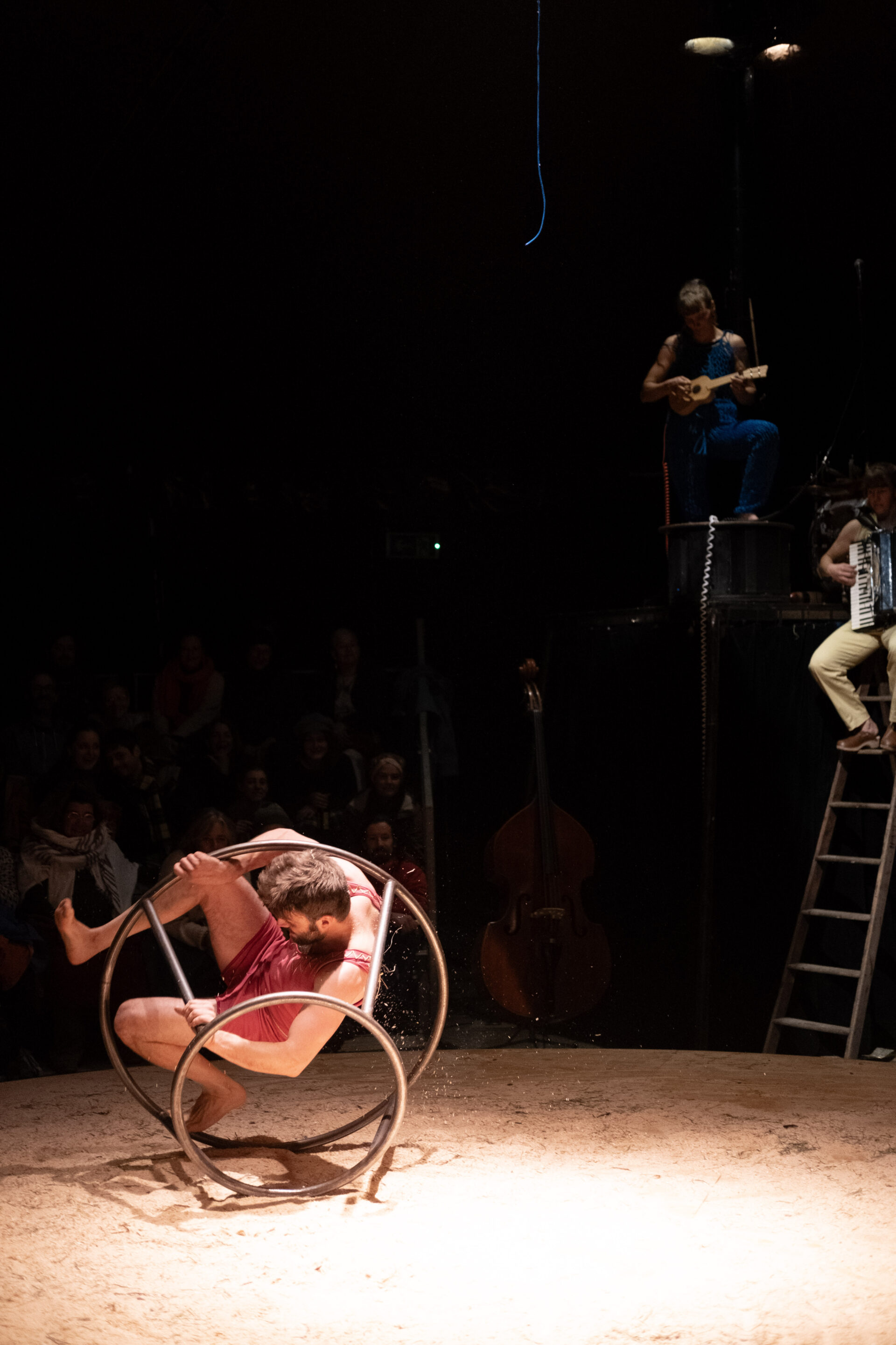 Zwei ungewöhnliche Zirkusarbeiten – «Ali» aus Frankreich und «Elefant» aus der Schweiz – teilen sich die Bühne. In «Ali» testen zwei Akrobaten ihre Grenzen mit einer Lampe, drei Beinen, vier Krücken und einem Holzstuhl. Sie spielen in diesem Kurzstück mit der maximalen Verschmelzung zweier Körper, mit bildhaften Illusionen an der Schnittstelle zwischen Zirkus und Tanz. Die in Frankreich berühmte Compagnie MPTA zeigt «Ali» zum ersten Mal in Aarau. «Elefant» spielt mit dem Zirkustier alter Tage schlechthin. Nur besteht hier der Elefant aus ein paar Kilo Metall, Holz, Wolle und Instrumenten. Damit stellt FahrAwaY all das her, was den Elefanten im Zirkus ausgemacht hat: den herzerwärmenden Humor, die Gutmütigkeit, aber auch die einschüchternde Grösse und den unzähmbaren, tollkühnen Geist des Zirkus.