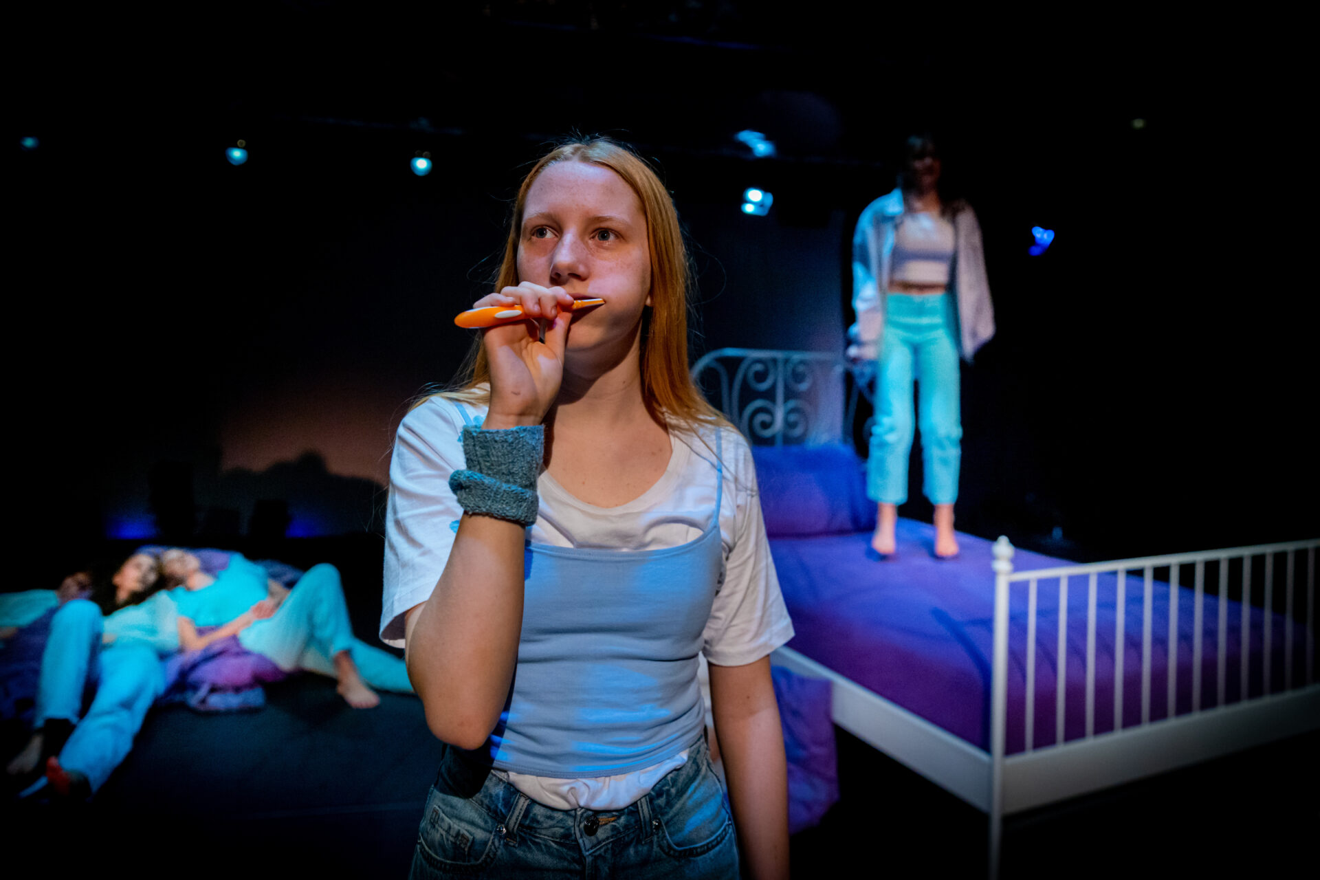 Schlaflosigkeit. Wimmelnde Eindrücke, dunkle Ängste und helle Aufregungen beschäftigen immer mehr Menschen. Und in der Nacht die Stille. Auch die 13 Spieler:innen des Jugendclubs u16 kennen das. Sie haben ihre Erfahrungen geteilt und daraus ein Stück entwickelt. Entstanden ist eine gute Nachtgeschichte – eine Gutenachtgeschichte für Jugendliche und Erwachsene.