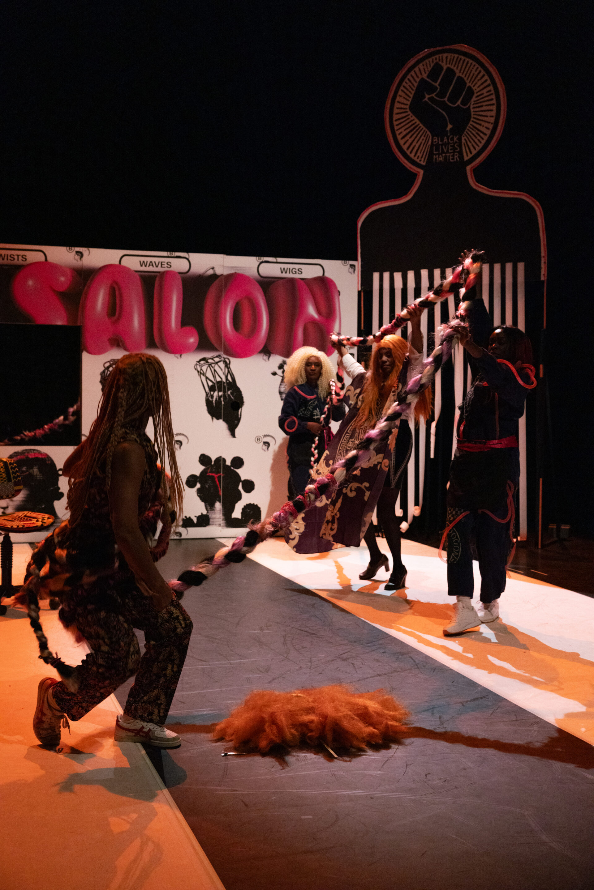 Seit Generationen treffen sich Schwarze Menschen in Schönheitssalons, um sich die Haare machen zu lassen, Haarprodukte zu kaufen und über vergangene und aktuelle Ereignisse zu sprechen. In «Beautysalon» versammeln sich vier Schwarze Menschen in einem Friseursalon und verwandeln diesen in einen Safer Space, einen Nachrichtenspot, eine politische Plattform, in einen Ort der Beratung und der Flucht vor Rassismus. Während neue Frisuren gemacht werden, erzählen sie sich Geschichten über die Schwarze Schweiz. Dies ist ihr Raum, dies sind ihre Geschichten. Das Stück greift Themen wie Mikroaggressionen, kulturelle Aneignung und die Dekonstruktion von Schönheitsstandards auf und erzählt Geschichten von Identität, Empowerment und Widerstand. «Beautysalon» ist ein Tanz-Theaterstück, das von einem mehrheitlich Schwarzen Team produziert wird und die Vielfalt, Schönheit und Erfahrungen der Schwarzen Community in den Mittelpunkt stellt.