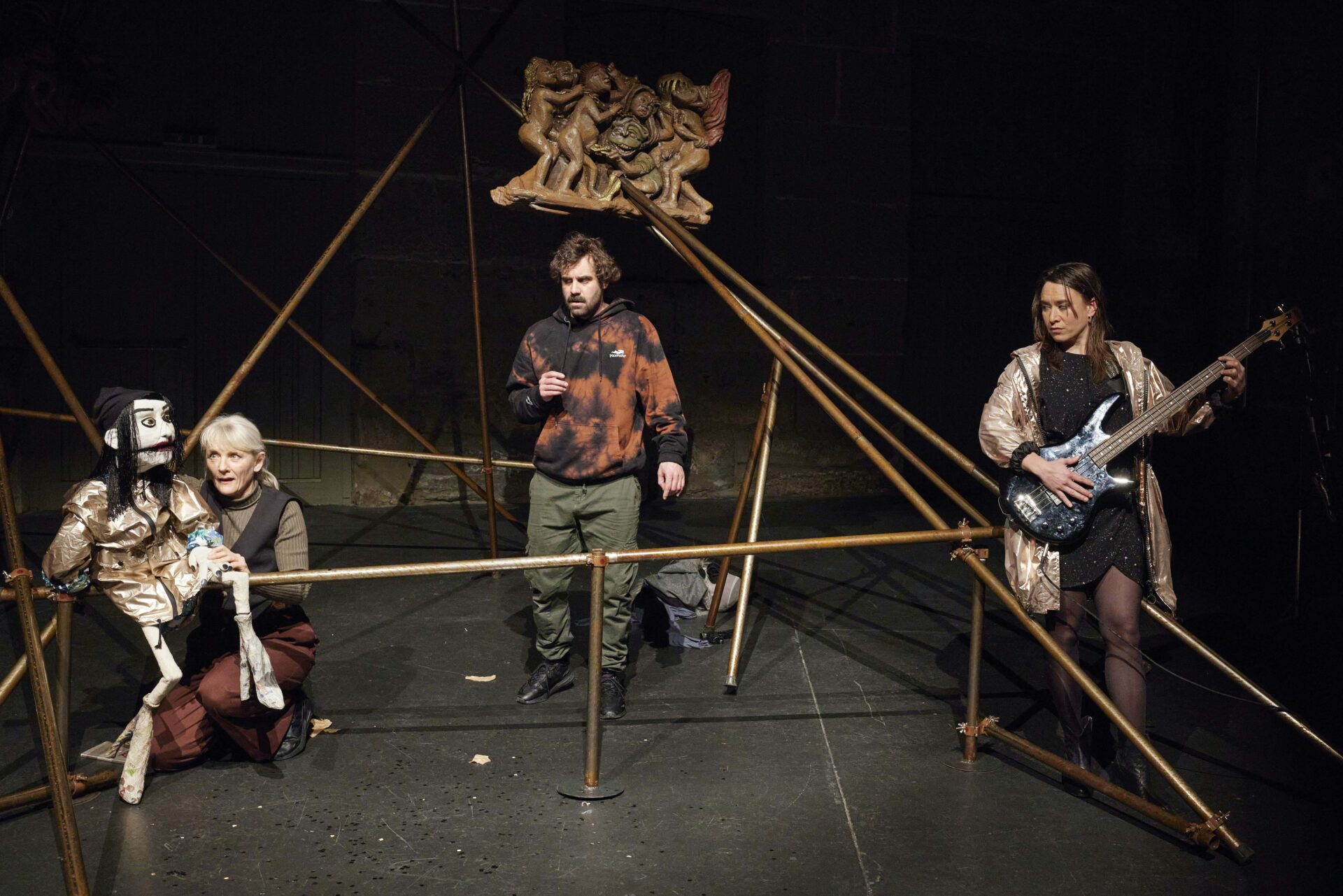 Bern ist eine Reise wert. Das Weltkulturerbe lockt die Tourist:innen an. Auch Dagmar und Mike flanieren durch die Stadt, nur sind sie nicht ganz freiwillig hier. Nach einem schief gelaufenen Auftragsmord an einem Pfarrer müssen die beiden Profikiller in der Schweiz untertauchen. Mit Theater, Puppen und Livemusik verhandeln Priska Praxmarer, Benjamin Mathis und Dirk Vittinghoff in ihrer düsteren Komödie Schuld und Sühne.