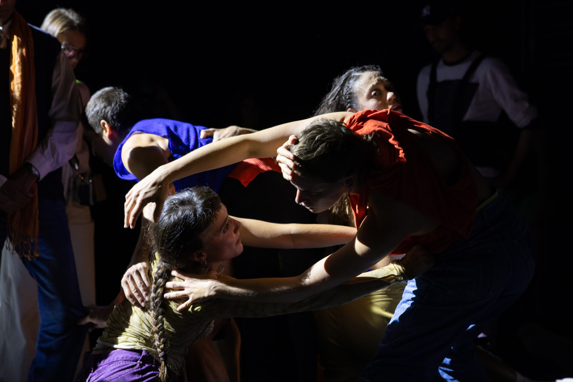 In «CHORA» sind Sie ganz nah dran am Tanz. Sie sind eingeladen, sich frei auf der Bühne zu bewegen, Sie können aber auch einfach zuschauen und sich von der Energie mitreissen lassen. CocoonDance lädt das Publikum ein, mit den Performer:innen den Raum zu teilen, mit der Szenerie zu verschmelzen. Die spielerische und gleichzeitig tiefgründige Aufführung hinterfragt den Platz der Einzelnen in einem Mikrokosmos, der sich in jedem Moment neu erfindet. Gemeinsam mit dem Publikum entwirft CocoonDance mit «CHORA» einen sich öffnenden und schliessenden Raum, der die Beziehung mit der umgebenden Welt spüren lässt. CocoonDance, vor allem für seine kraftvollen, den Körper dekonstruierenden Arbeiten bekannt, konzentriert sich in «CHORA» ganz auf die Vorstellung und Wahrnehmung des Raums, verbindet Dinge und Körper, schafft Resonanzräume. Das 2000 gegründete kollektive Projekt CocoonDance um die Schweizer Choreografin und FAUST-Preisträgerin 2022, Rafaële Giovanola ist aus der zeitgenössischen europäischen Tanzszene nicht mehr wegzudenken.