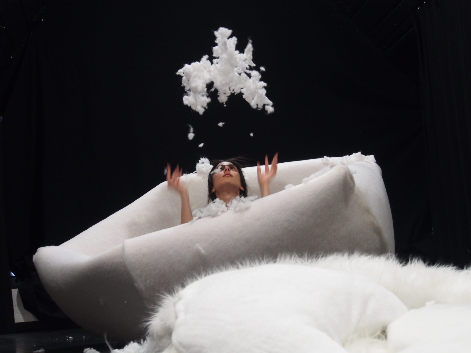 Auf der Bühne steht ein grosses, weiches Etwas. Es wackelt und wobbelt, dann wird es wieder still. Wer oder was versteckt sich darin? Ein Arm, ein Bein und noch ein Arm… aber wie gehören diese zusammen?