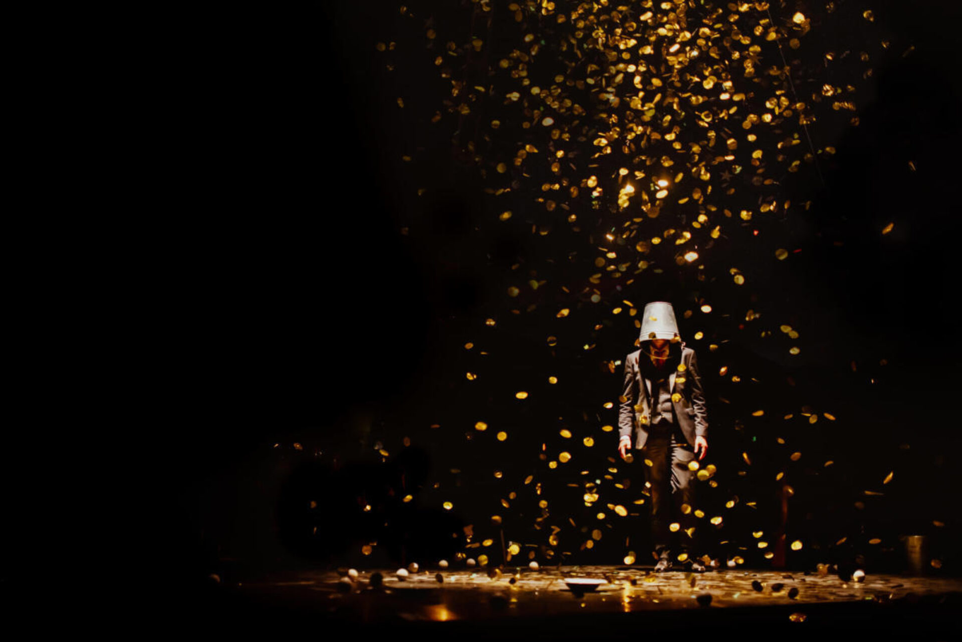 In immer absurderen Verkettungen fliegt das Gold aus dem Himmel und Ziegelsteine treffen auf Weingläser. Hier entscheidet das Publikum – wenn es will – über den Lauf der Dinge mit. Oder es geniesst es, nicht einzugreifen und dem Scheitern zuzusehen. Der Lauf der Dinge lässt sich nicht aufhalten, aber er komponiert sich jedes Mal wieder neu – zur Freude von Gross und Klein.