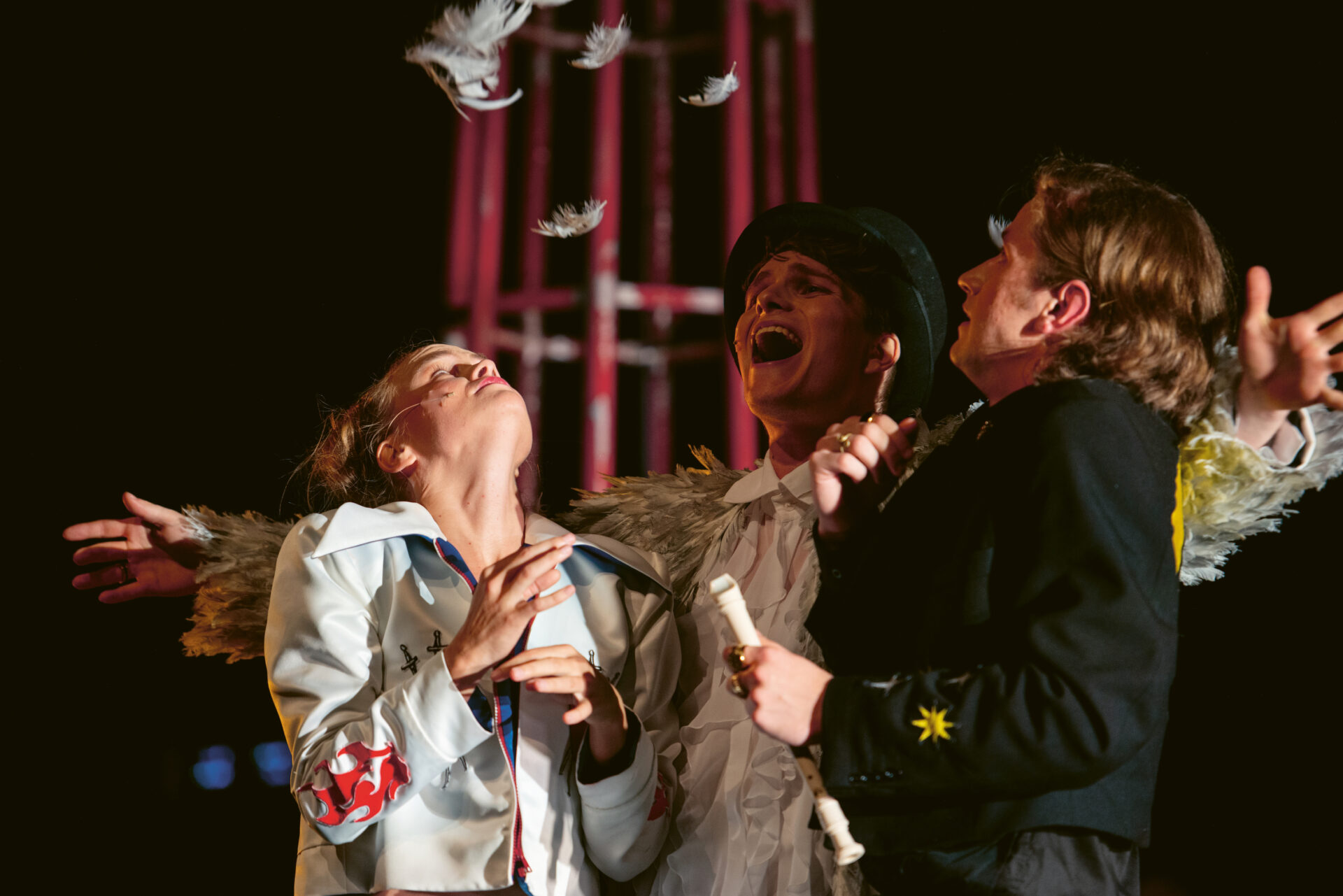 Auf witzige und durchaus kreative Weise erzählen sechs Schauspieler:innen das Abenteuer des Prinzen Tamino, der zusammen mit dem verrückten Vogelfänger Papageno die Tochter der geheimnisvollen Königin der Nacht retten soll. Gemeinsam bestehen sie gefährliche Prüfungen, lernen Flöte spielen und finden ganz nebenbei die Liebe ihres Lebens.