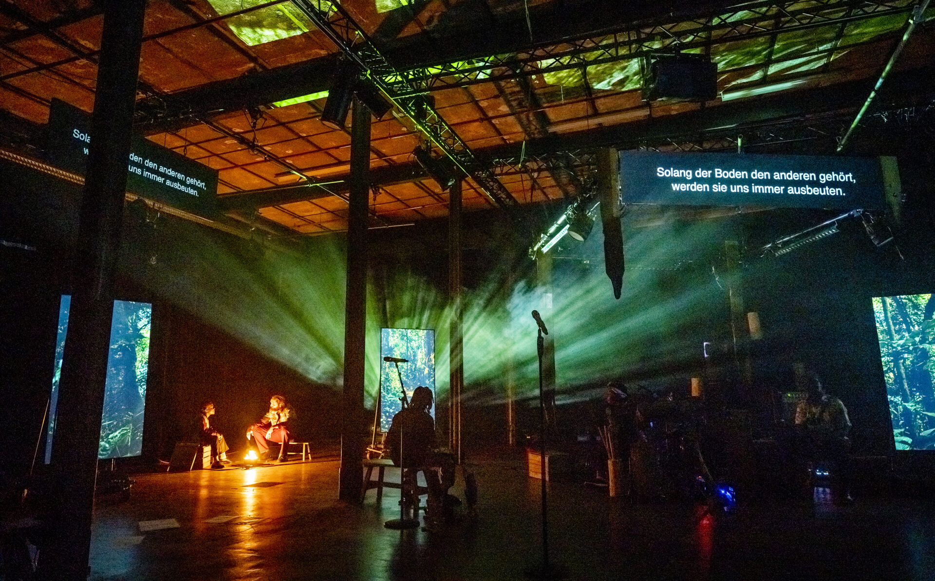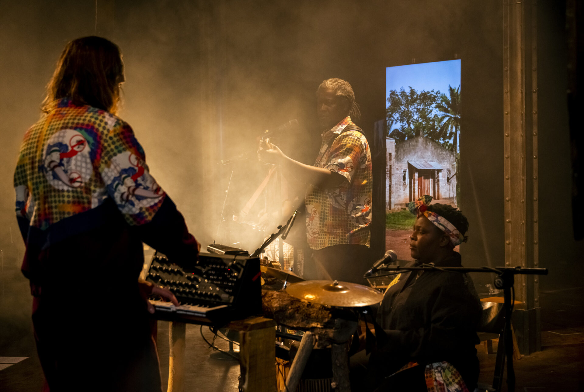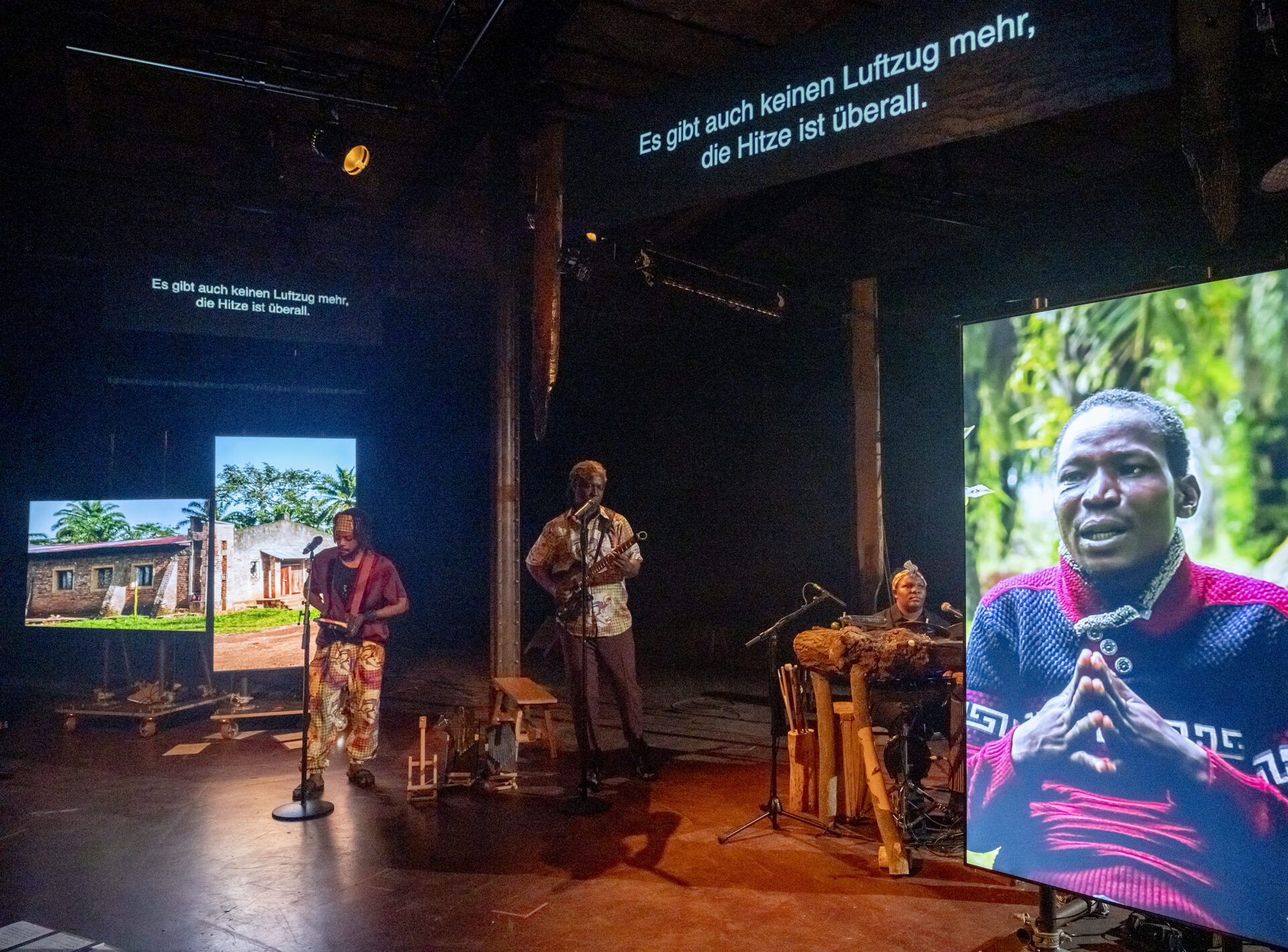 Wenn wir den Regenwald retten, retten wir das Klima! Mit diesem Slogan rechtfertigen internationale Umweltorganisationen seit Jahrzehnten ihre Interventionen in den äquatorialen Wäldern. Während die Weltbevölkerung allmählich versteht, dass sie gegen die Abholzung des Waldes im Kongobecken vorgehen muss, weil er grosse Mengen CO2 bindet, wird die lokale Bevölkerung einmal mehr zum Spielball geopolitischer Interessen. Für ECOSYSTEM reist die GROUP50:50 in den Nordosten des Kongos und erarbeitet mit Bewohner:innen des Regenwaldes ein multimediales Musiktheaterstück über ein Ökosystem, das aus den Fugen gerät.
