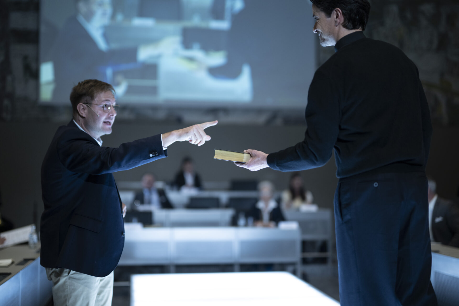 Mit 78 Jahren äussert die Architektin Elisabeth Gärtner den Wunsch, ihrem Leben ein Ende zu setzen. Seit dem Tod ihres geliebten Ehemannes vor drei Jahren ist ihr Lebenssinn verschwunden. Frau Gärtner, die weder unheilbar krank ist, noch an starken Schmerzen leidet, beantragt bei der Ärztin ihres Vertrauens Dr. Brandt ein Rezept für eine tödliche Dosis Natrium-Pentobarbital. Diese möchte allerdings aus ethischen Bedenken keine Beihilfe zum Suizid leisten. In dem Stück «Gott» von Autor und Jurist Ferdinand von Schirach streiten in einem fiktiven Ethik-Rat juristische, medizinische und theologische Sachverständige über das kontroverse Thema. Sollen Ärzt:innen beim Suizid helfen? Ist ärztliche Suizidhilfe auch im Falle eines gesunden Menschen richtig? Hat der Mensch ein Recht auf selbstbestimmtes Sterben? Wem gehört unser Leben? Wer entscheidet über unseren Tod? Die Bündner Regisseurin und Schauspieldirektorin am Konzert und Theater St. Gallen Barbara David Brüesch hat das Stück an Schweizer Verhältnisse angepasst. Am Ende entscheidet das Publikum als Teil des fiktiven Ethik-Rats, ob Frau Gärtner aus dem Leben scheiden darf.
