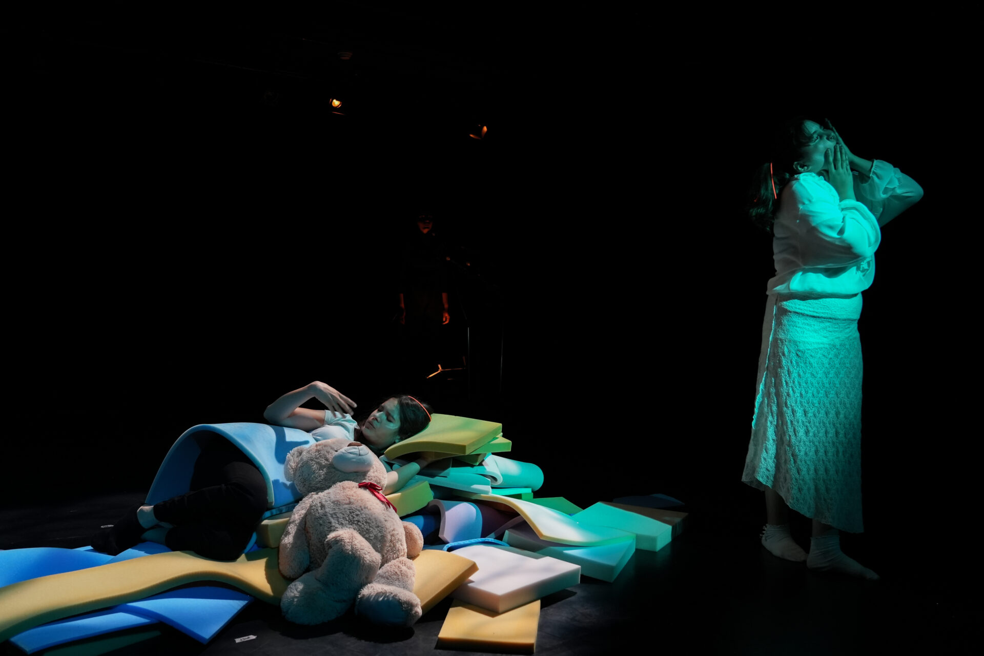Wovon träumen wir nachts? Was lässt uns grübeln und raubt uns den Schlaf? Und was ist das für ein Schatten an der Wand, der die Form ändert? Mit der neuen Performance «Ich kann nicht schlafen» widmet sich der Spielclub u16 den Themen Angst, Schlaflosigkeit und den inneren Konflikten junger Menschen. Die Produktion lässt Tanz und Sprache miteinander verschmelzen und nimmt das Publikum in eine Welt von Albträumen und inneren und äusseren Ängsten. Durch diese Unsicherheiten lassen sich die Spieler*innen jedoch nicht unterkriegen und finden immer wieder Momente des Widerstands und der Freude – sei es in einer wilden Kissenschlacht oder der Kraft, die durch die Vibes von bekannten Pop-Songs entsteht.