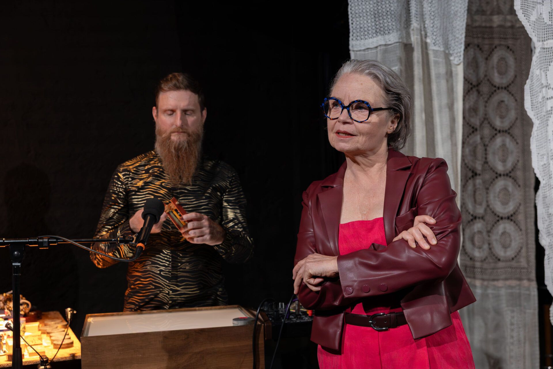 In dem Projekt «Maman» arbeiten Künstler:innen aus drei Generationen und drei Disziplinen zusammen. Die jüngste beteiligte Künstlerin ist die 28-jährige Ausstatterin Jana Brändle und die älteste die 81-jährige Autorin Sylvie Schenk. Dazwischen reihen sich Raphael Loher (35), Anna Papst (40), Roland Bucher (47) und Chantal LeMoign (65) ein. Wir begreifen diese Alters-durchmischung als Chance, aus sehr unterschiedlichen Perspektiven auf die Biographie einer Frau zu blicken, die 1916 als Tochter einer Prostituierten geboren wurde. Das Bühnenbild, bestehend aus handbestickten Textilien aus dieser Zeit, verweist auf die strukturellen Gegebenheiten, die hinter dieser Biografie stehen: Ausgebeutet von der Textilindustrie sahen sich tausende Frauen dazu gezwungen, sich durch Prostitution etwas dazu zu verdienen. Ihre Kinder wurden als kostenlose Arbeitskräfte fürsorgerisch untergebracht. Text und Inszenierung begegnen der Schwere dieser Schicksale mit einem emanzipatorischen Gestus: Als Feier der «gefallenen» Frauen und ihren unehelichen Kindern.