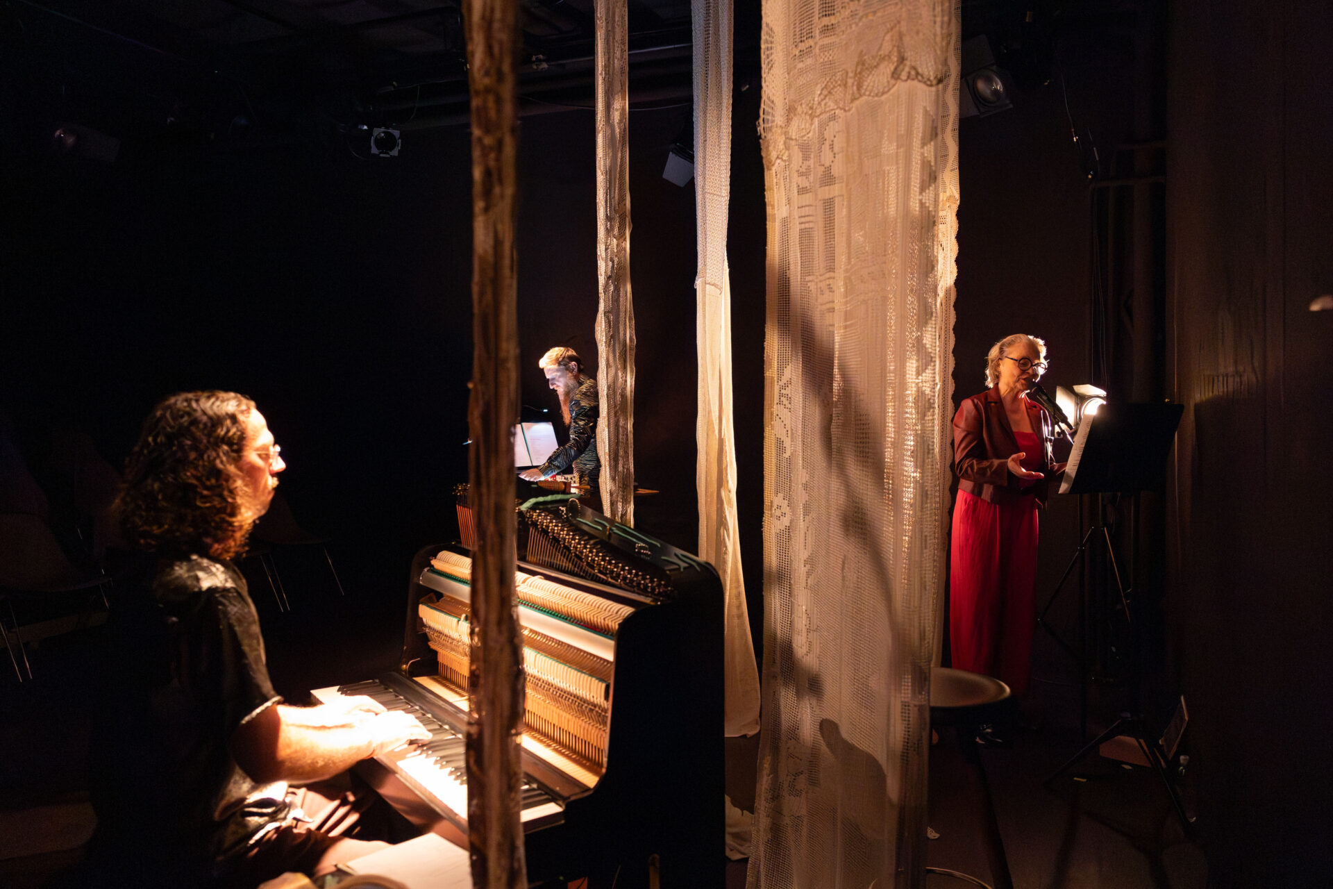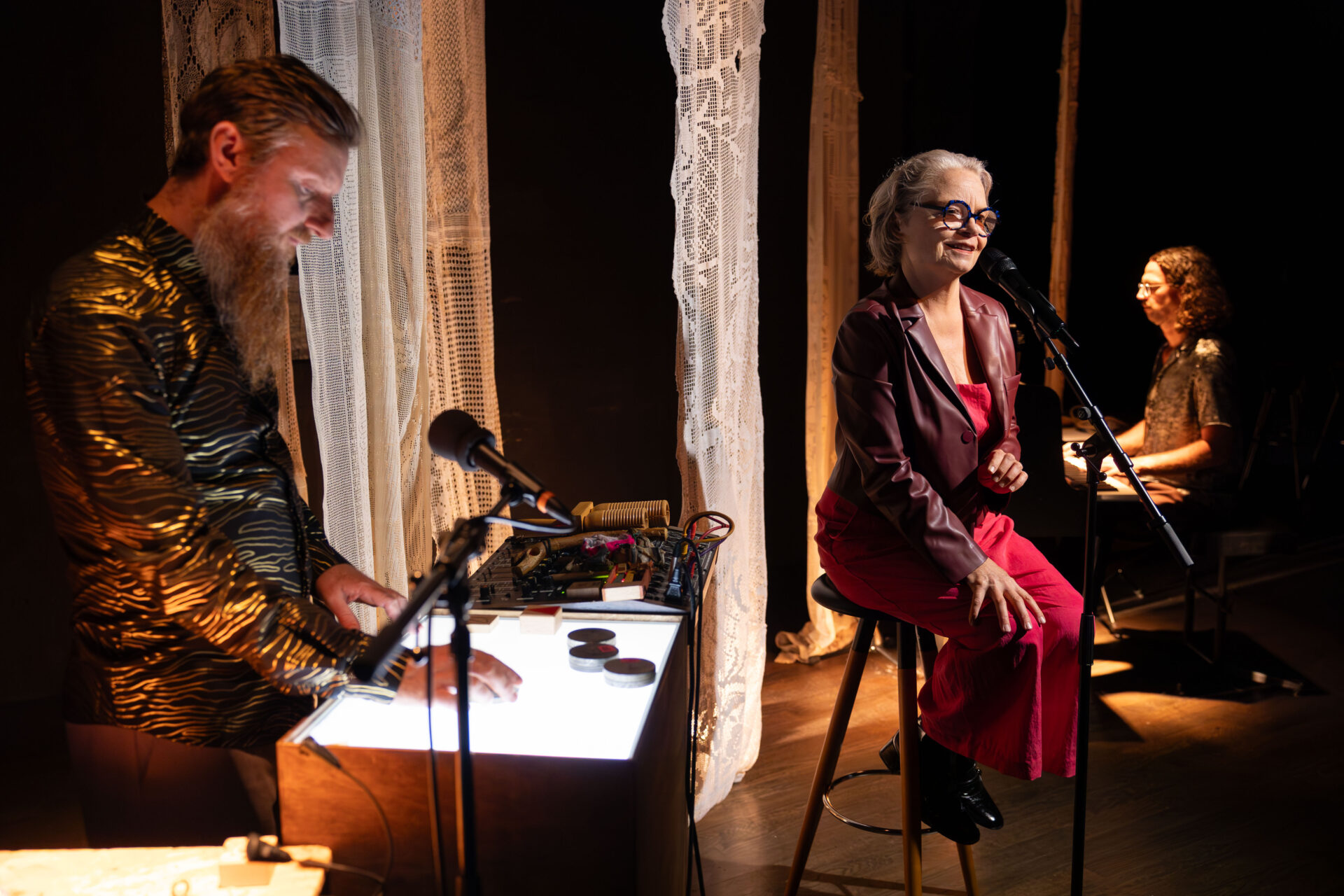 Wie versöhnt man sich mit einer Toten? Was lässt sich diskutieren, klären, schlichten, verstehen, wenn ein Mensch seine Geheimnisse mit ins Grab nimmt? «Maman» erzählt von einer Tochter, die erst nach dem Tod ihrer Mutter erfährt, welche Traumata diese erlitten hat und wie sie zu dem Menschen wurde, der sie war. In einer Inszenierung an der Schnittstelle von Literatur, Musik und Performance, unternimmt «Maman» den Versuch, mit einem Menschen in Dialog zu treten, der selbst nicht mehr antworten kann. Sprache und Musik lassen sich in dieser Konzertperformance nicht getrennt voneinander denken. Aus dem Stottern der Performerin wird der Rhythmus der Musik, aus dem gesungenen Dreiklang formt sich das erste Wort des Textes. Mal wird wortgewaltig im Stakkato erzählt, mal versagt die Sprache und die Musik übernimmt. In einem dichten Gig durchlaufen sowohl die drei Künstler:innen auf der Bühne als auch das Publikum verschiedene Stadien der Trauer: Da ist Platz für Wut, Zweifel, aber auch für Poesie und Versöhnung.