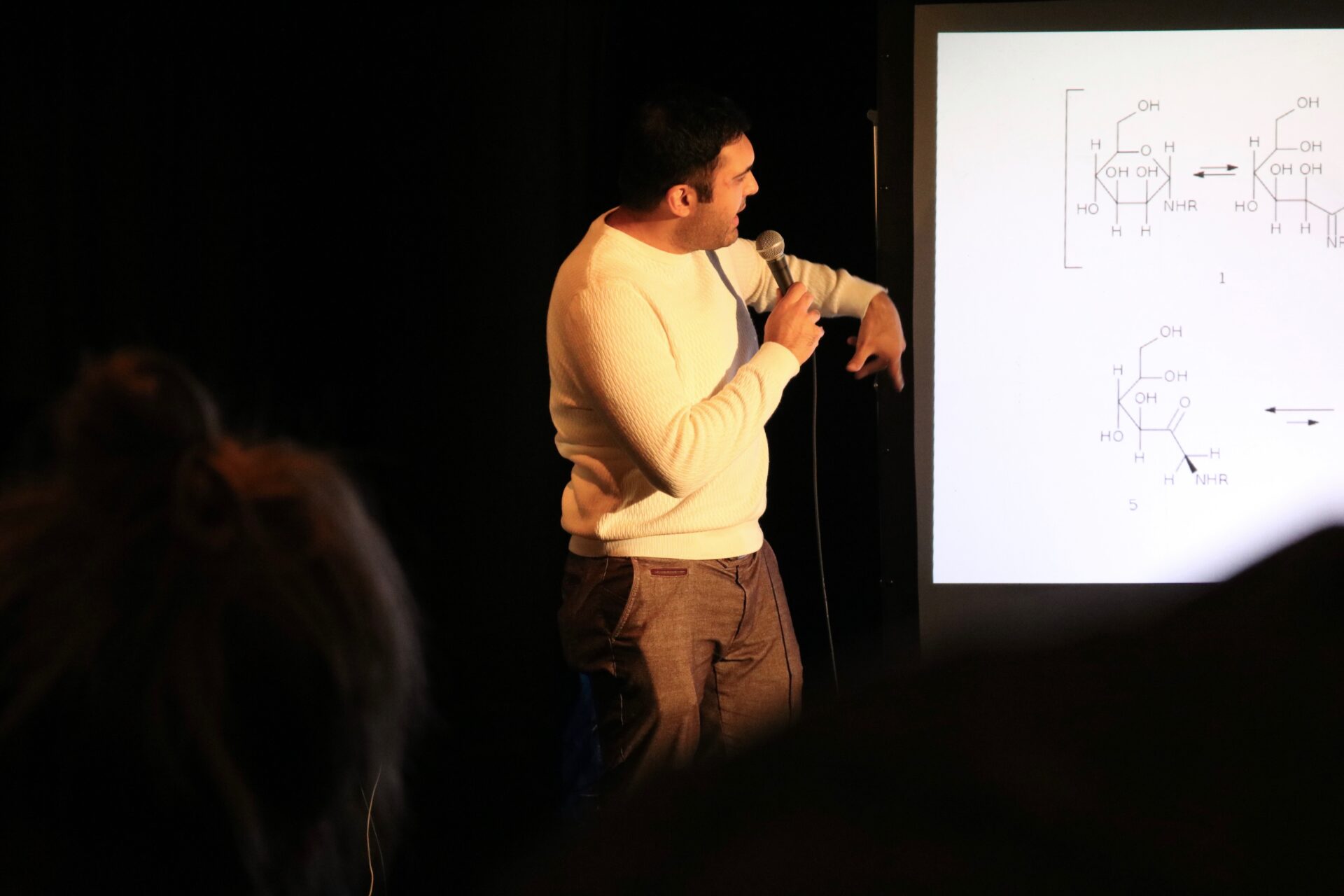 Da steht zum Beispiel eine Ameisenbärenforscherin auf der Bühne, die erklärt wie das seltsame, fast blinde Tier mit einem lediglich erbsengrossen Hirn in der freien Wildnis überlebt. Oder ein Sozialwissenschaftler, der von seinen Recherchen über polyamore Beziehungen berichtet. Genauso wie ein Teilchenphysiker, der über die Erforschung der allerkleinsten Materie in der grössten und komplexesten je von Menschenhand gebauten Maschine am CERN slammt.