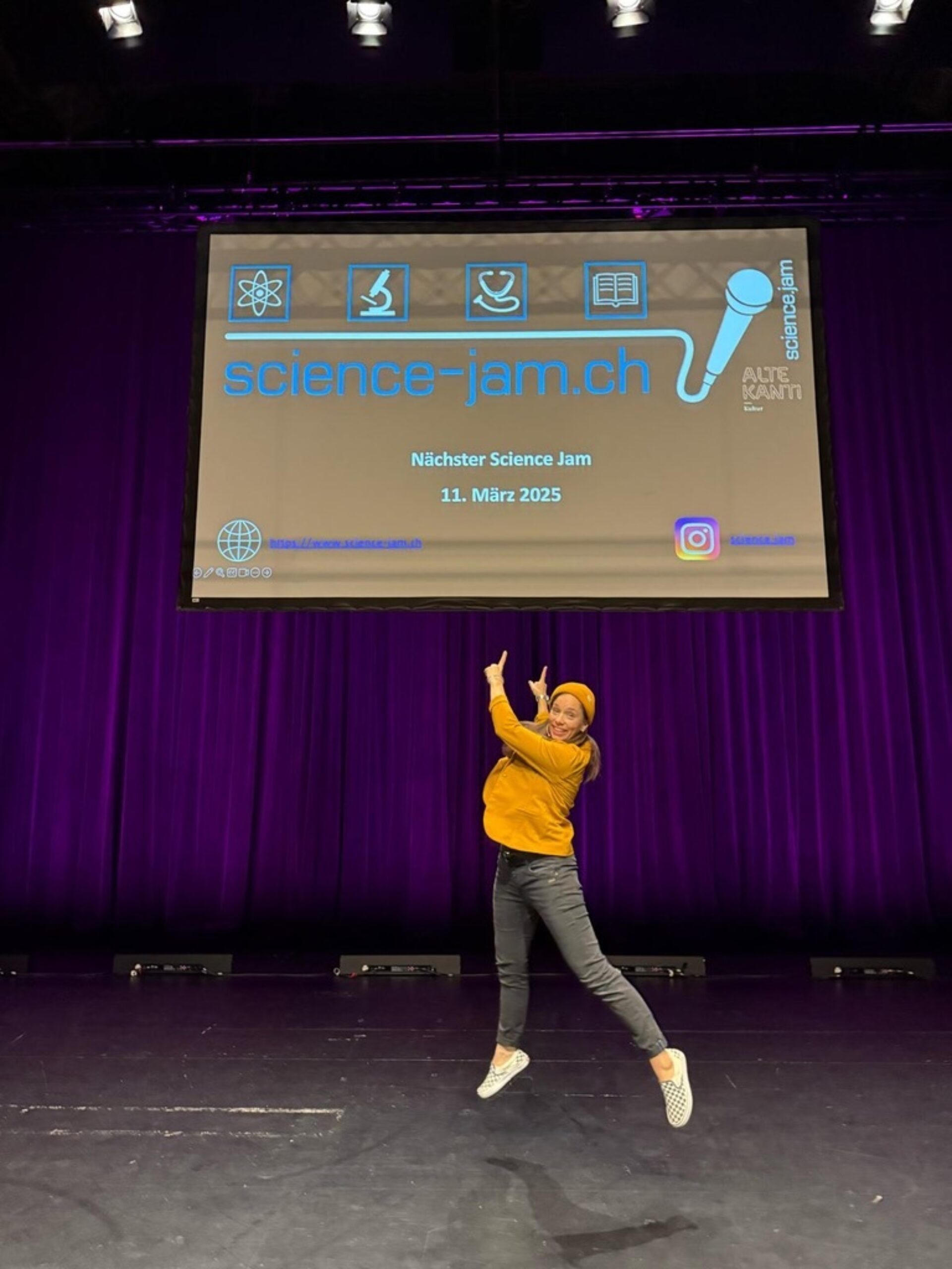 Zweimal im Jahr holt Alte Kanti Kultur Wissenschaftler:innen aus dem In- und Ausland nach Aarau auf die Bühne. In nur fünfzehn Minuten präsentieren sie ihre Forschung in der Form eines Slams. Sie lassen das Publikum in die faszinierende Welt der Wissenschaft eintauchen und geben ebenso spannende wie humorvolle Einblicke in ihre Forschung. Beim Science Jam werden Wissenschaft und Unterhaltung zu einem Erlebnis!