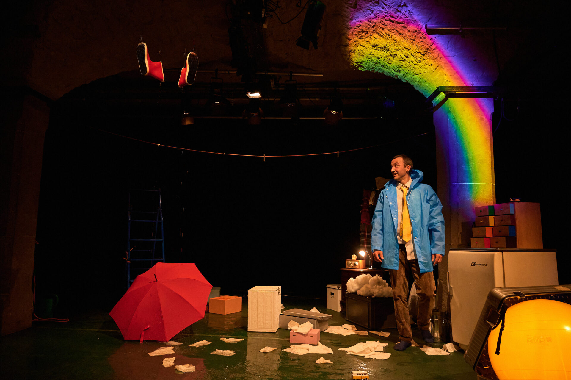 Auch für die Kleinsten ist das Wetter schon nach dem Aufstehen ein Dauerthema: Was anziehen, wenn es kalt ist oder regnet? Oder beschert uns die Sonne einen richtig warmen Tag? Der Performer Moritz Alfons lässt die Kapriolen der Natur durch Objekte, Materialien und Phänomene lebendig werden.