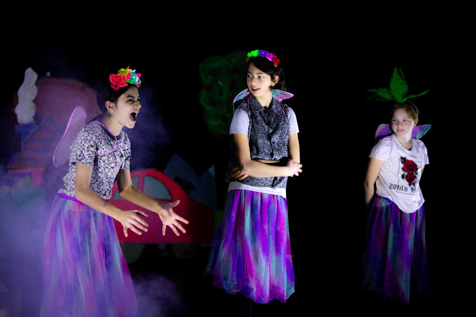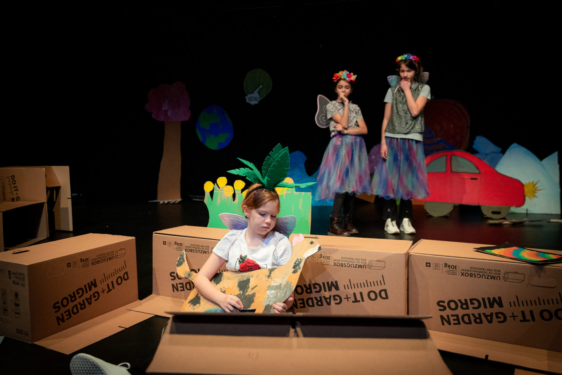 «Was wäre, wenn» ist inspiriert vom Projekt «Earth Speakr» und weiteren Arbeiten des Künstlers Olafur Eliasson, die sich um die Beziehung zwischen Natur und Mensch drehen. Die Spielerinnen vom Kinderclub u12*2 setzen sich mit Fragen zum Klimawandel auseinander, wechseln die Perspektive, werden zum Wirbelsturm, zur Tsunamiwelle, zur Blume am Wegrand. Sie geben der Natur eine Stimme und denken die Welt neu.