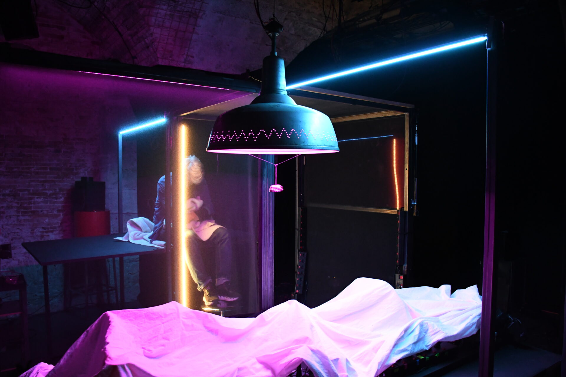 Eine rätselhafte Krankheit verbreitet sich auf der ganzen Welt. Die Infektion bewirkt bei Männern eine Auflösung der im Gehirn verankerten Schranke zwischen Sexualtrieb und Gewalt und es entstehen Sekten, die den Femizid aus ideologischen, religiösen und politischen Gründen propagieren. Frauen auf der ganzen Welt werden getötet. Schliesslich stellt sich heraus, dass die Krankheit von einer ausserirdischen Lebensform gezielt eingesetzt wurde, um die Erde von der Menschheit zu «reinigen» und sie für eine Neubesiedlung vorzubereiten: Eine Dystopie über Gewalt, Mensch und Technik, Geschlechterverhältnisse und Eigenverantwortung. «Wie die Fliegen» ist ein Hör-Raumtheater frei nach der dystopischen Erzählung der Science-Fiction-Autorin James Tiptree aus dem Jahr 1977. Sebastian Krähenbühl und Astride Schlaefli führen das Experiment, das sie in «Der Krieg mit den Molchen» begonnen haben, weiter: Aus der Dunkelheit entstehen Bilder, Welten und Realitäten mithilfe von Ton, Licht, Objekten und an- oder abwesenden Körpern.